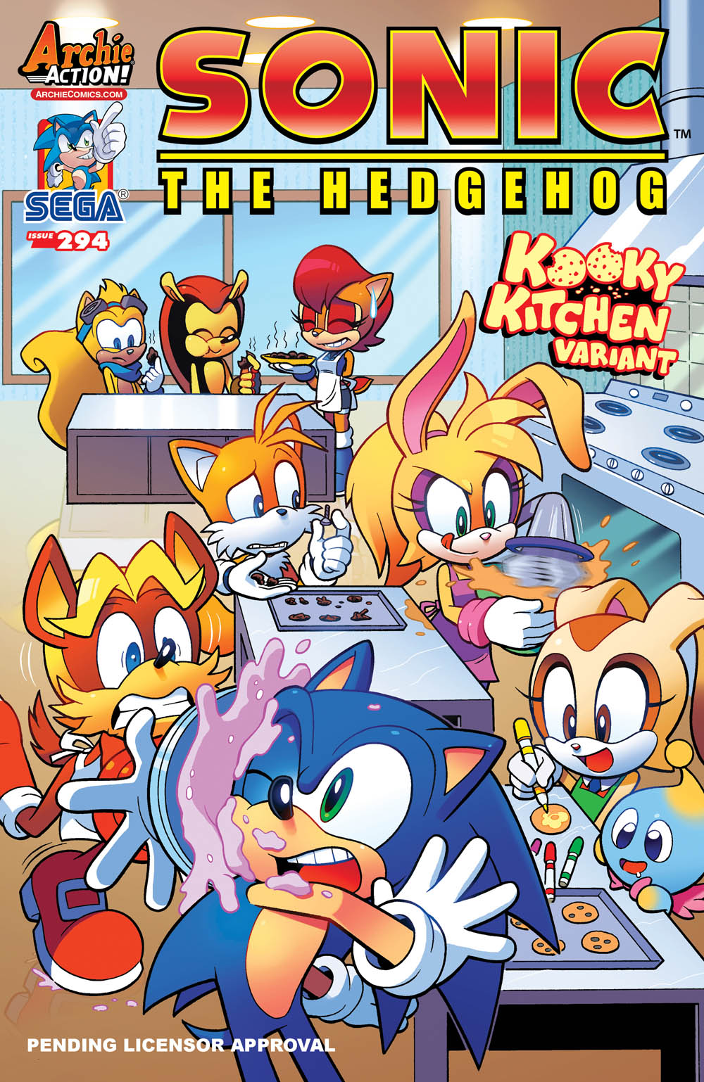 After that, it becomes harder for us to know what the future of Archie Sonic might've entailed. No interior artwork is available for the remaining issues, as the artists probably hadn't even started working on them yet. So all we have to go on are the cover images and the official solicitations Archie sent out to retailers. From this information, we can gleam this much about issue 293 of "Sonic:" It would've been set in "Sonic Mania's" Studiopolis Zone. The plot apparently would've involved Sonic appearing on the set of a